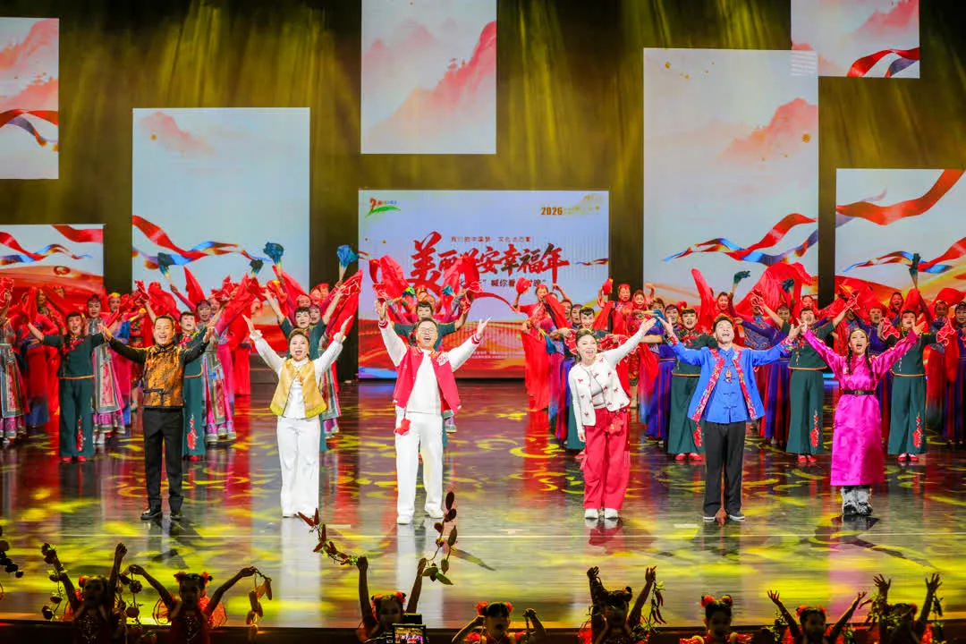 作为2026年度全区“四季村晚”冬季示范展示活动,晚会创新采用“文化村长”串联全场,以沉浸式、互动式叙事,带领农牧民由“台下观众”变为“舞台主角”,洋溢出浓郁的乡土气息与烟火味。