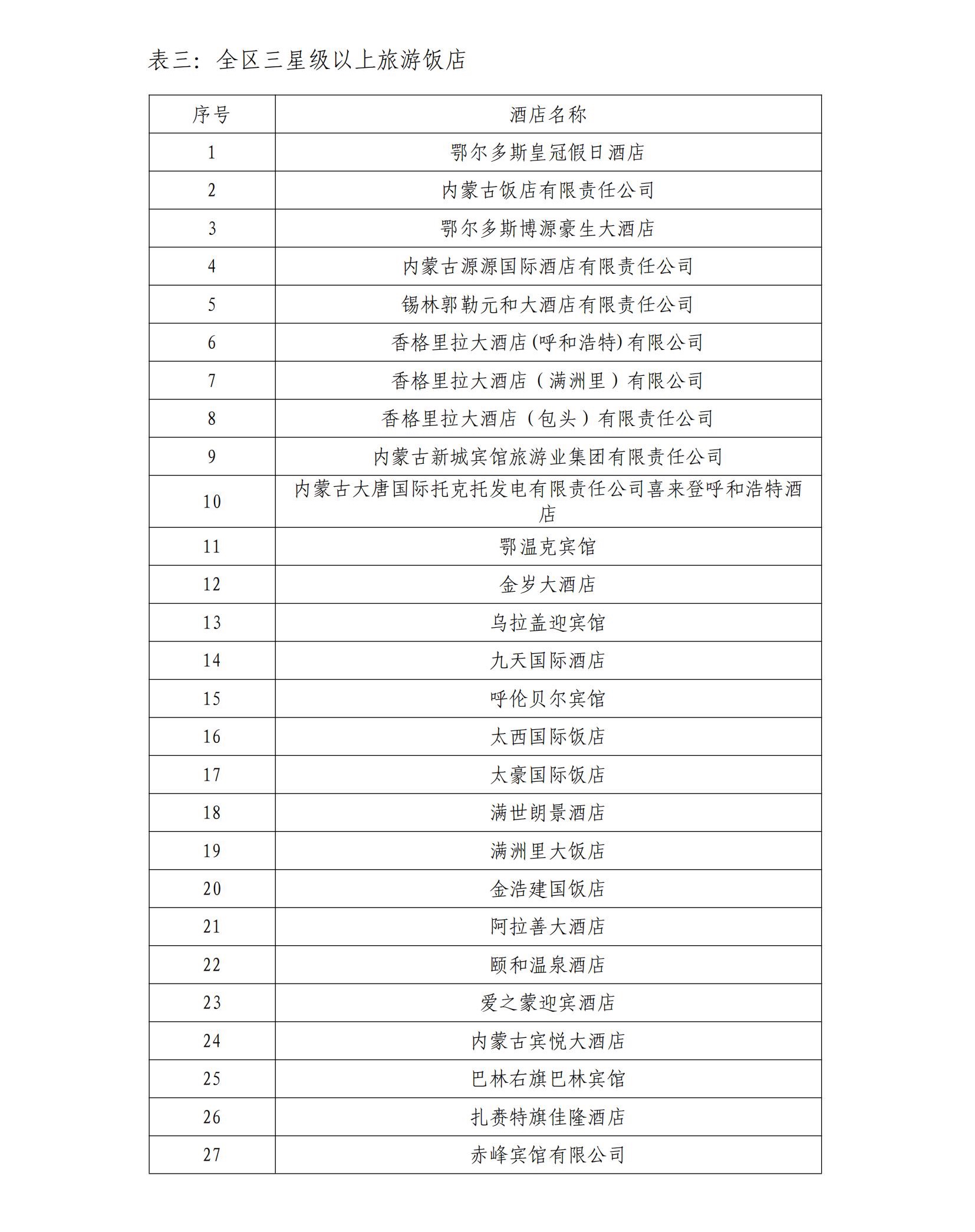 内蒙古自治区旅游星级饭店名单, 邮寄地址:呼和浩特市赛罕区乌兰察布西街32号内蒙古文化大厦304室