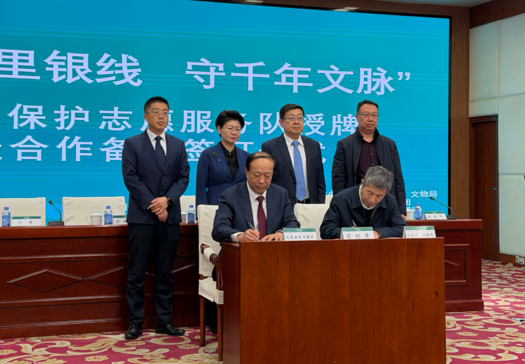 1月7日,内蒙古自治区文化和旅游厅、自治区文物局与内蒙古电力(集团)有限责任公司在呼和浩特市共同举行“巡万里银线,守千年文脉”活动。现场,内蒙古自治区文化和旅游厅、文物局与电力集团签署合作备忘录,并向电力集团相关单位授予“文物保护志愿服务队”牌匾,标志着首支“电力+文物”文物保护志愿服务队正式组建,这支1900余名跨界融合的队伍,将为内蒙古广袤大地上的文化遗产筑起一道流动的“守护墙”。