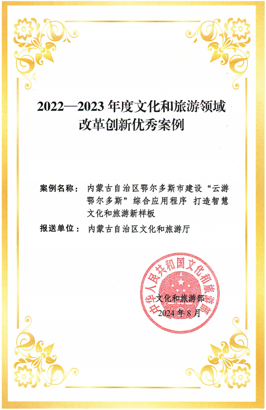 历经5年发展,“云游鄂尔多斯”凭借其创新的模式、前沿的技术和显著的成效屡获殊荣,赢得了从国家到地方、从行业到用户的多重认可,先后获评2023年度鄂尔多斯智能社会治理实验综合基地典型案例、文化和旅游部2022—2023年度文化和旅游领域改革创新优秀案例,并在2025年荣获全国“繁荣旅游消费创新实践典型案例”,这些重量级荣誉充分肯定了其以数智化为核心的“鄂尔多斯模式”,同时,也清晰地勾勒出一条从模式创新到技术应用,再到成效验证的卓越发展路径。